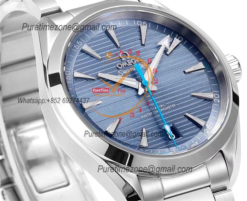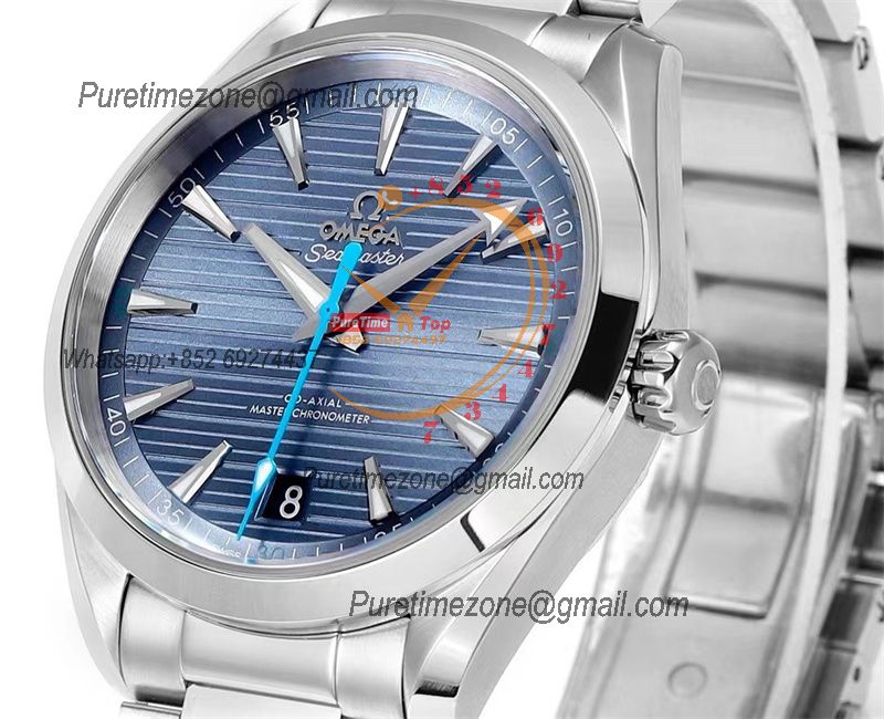 Aqua Terra 150M Worldtimer A8938 Automatic Mens Watch Best Edition N1F V2 43mm Blue Dial on SS Bracelet CHS
