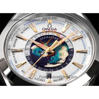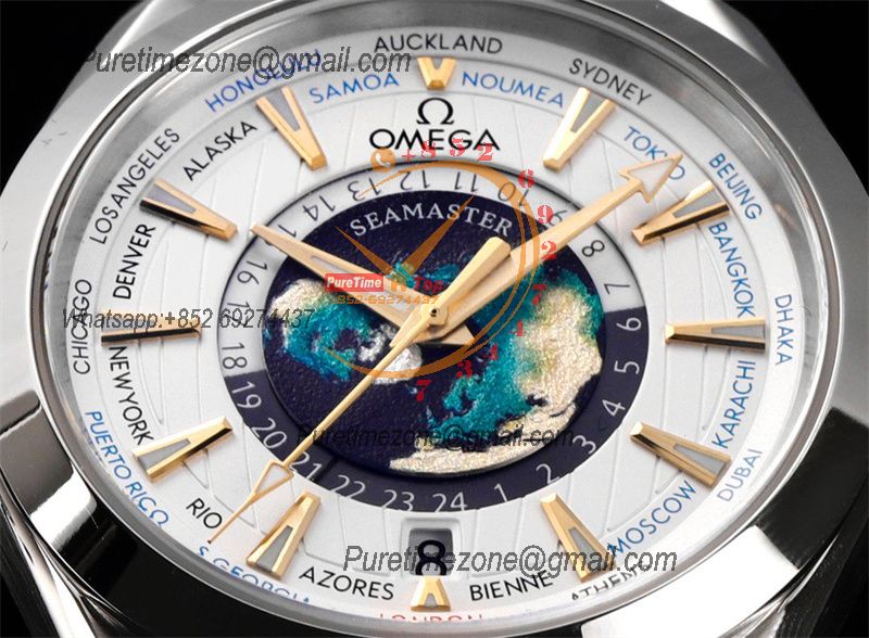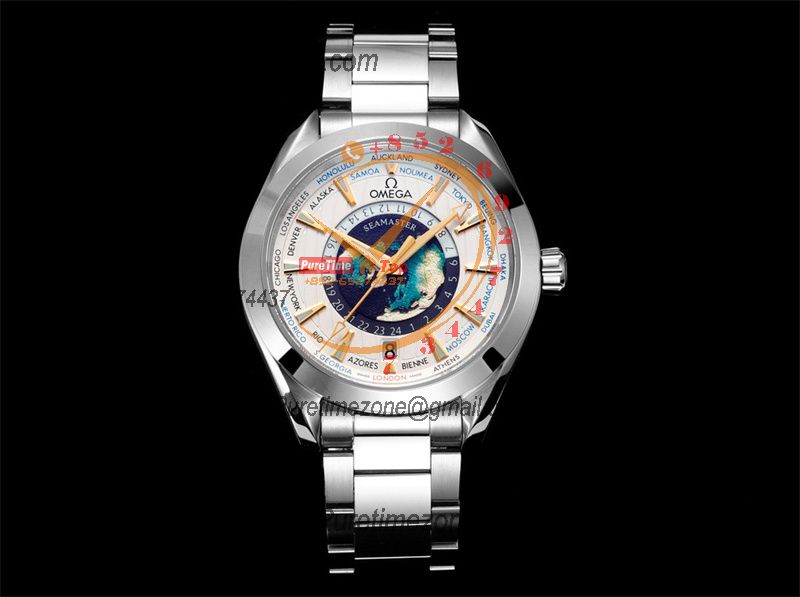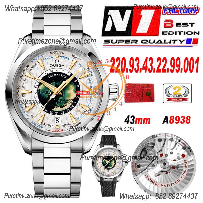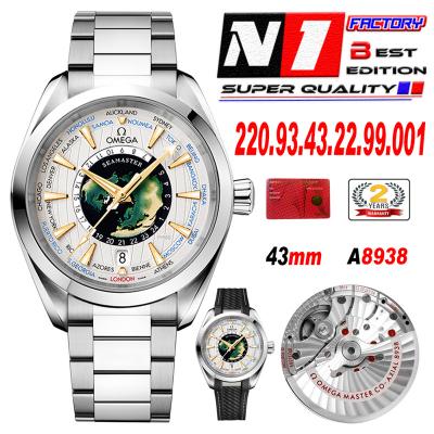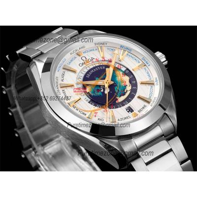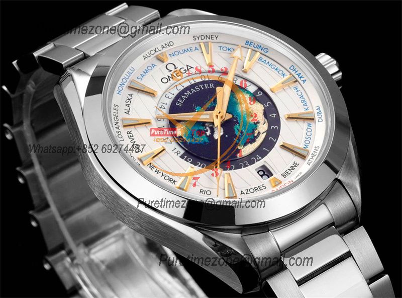 Home OMG Aqua Terra 150M Worldtimer A8938 Automatic Mens Watch Best Edition N1F V2 43mm White Dial on SS Bracelet CHS