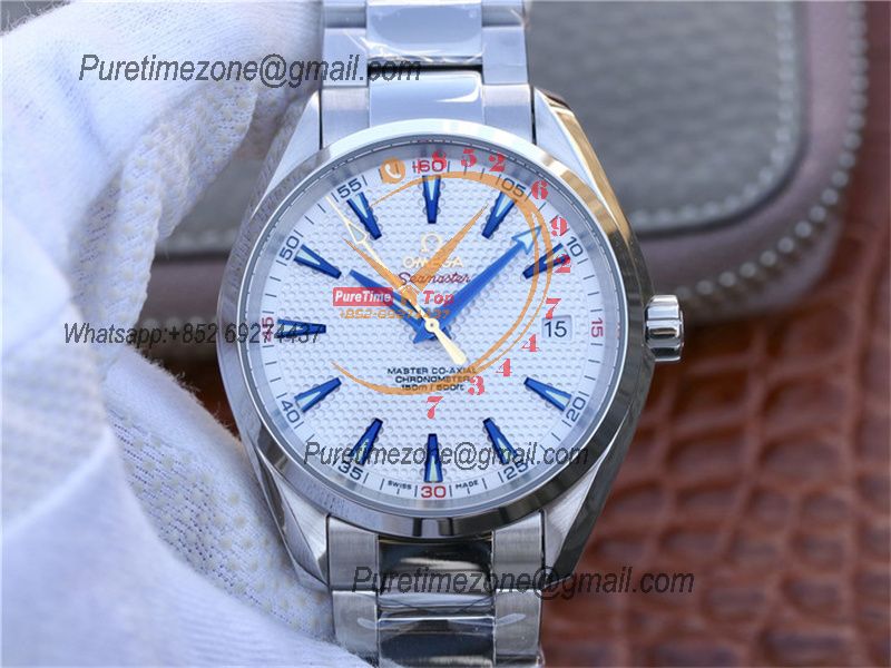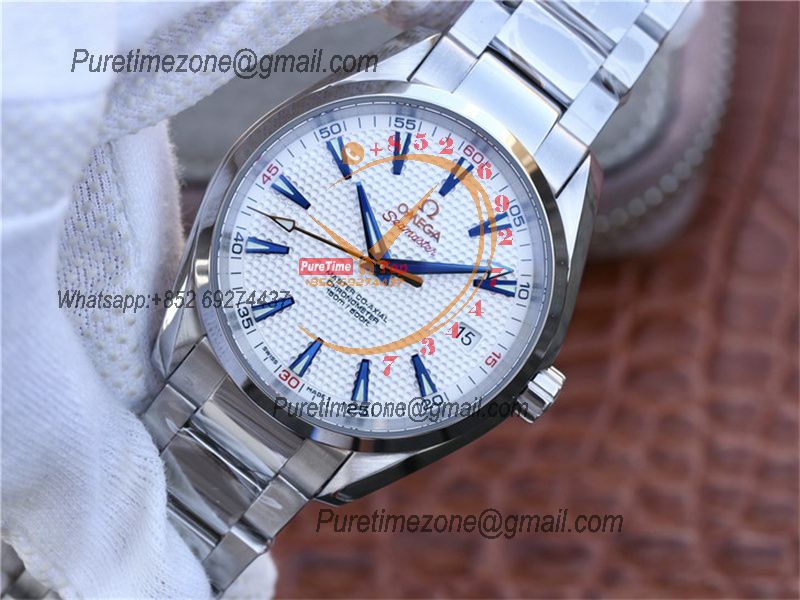 Home OMG Aqua Terra Master Ryder Cup Edition A8500 Automatic Mens Watch Best Edition VSF White Textured Dial SS Bracelet CHS