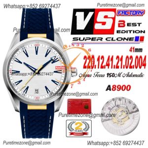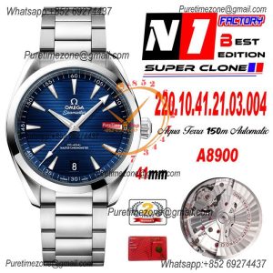 Aqua Terra 150M Master Chronometers A8900 Automatic Mens Watch Best Edition N1F 41 Teak Blue Dial SS Bracelet CHS