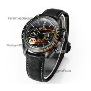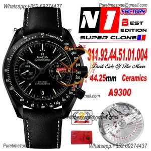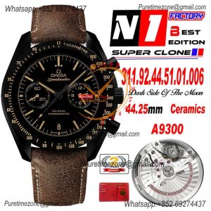 Speedmaster “Dark Side of The Moon” Real Ceramic A9300 Automatic Mens Watch Best Edition N1F 44.25 Black Dial Leather