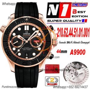 Seamaster 300M A9900 Automatic Chronograph Mens Watch Best Edition N1F 44mm RG Black Dial Rubber CHS