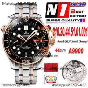 Seamaster 300M A9900 Automatic Chronograph Mens Watch Best Edition N1F 44mm Steel RG Black Dial Rubber CHS