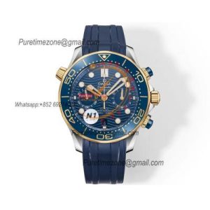 Seamaster 300M A9900 Automatic Chronograph Mens Watch Best Edition N1F 44mm YG Blue Dial Rubber CHS