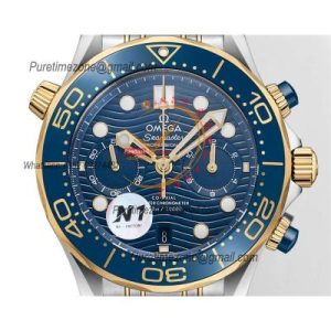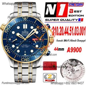 Seamaster 300M A9900 Automatic Chronograph Mens Watch Best Edition N1F 44mm YG Blue Dial SS Bracelet CHS