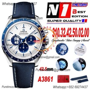 Speedmaster “Silver Snoopy Award” A3861 Automatic Mens Watch Best Edition N1F 42.5 White Dial on Nylon Strap CHS