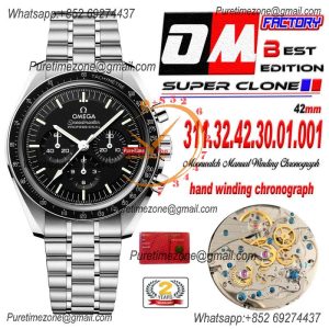 Speedmaster MoonWatch Professional Chronograph Manual-Winding Mens Watch Best Edition OMF Black Dial SS Bracelet CHS