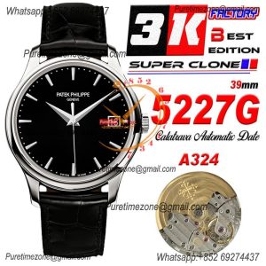 Calatrava 5227R 39mm A324 Atuomatic Mens Watch Best Edition 3KF V2 SS Black Dial Brown Leather Strap CHS $930.00 $620.00