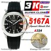 Aquanaut 5167A A324 Automatic Mens Watch Best Edition PPF Steel Case Black Embosse Dial Rubber Strap CHS