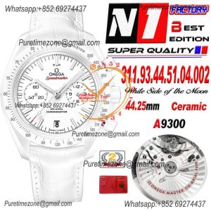 Speedmaster "Dark Side of The Moon" Real Ceramic A9300 Automatic Mens Watch Best Edition N1F 44.25 White Dial Leather $900.00 $750.00