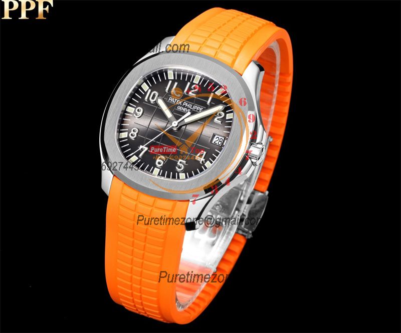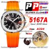 Aquanaut 5167A A324 Automatic Mens Watch Best Edition PPF Steel Case Gray Embosse Dial Orange Rubber Strap CHS