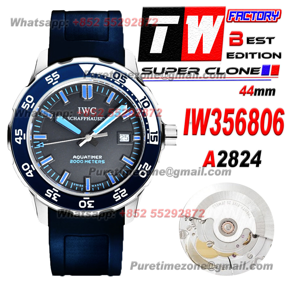 Aquatimer 2000 IW356806 Automatic Mens Watch Super Clone TWF 44mm Black Dial Blue Rubber Strap A2824