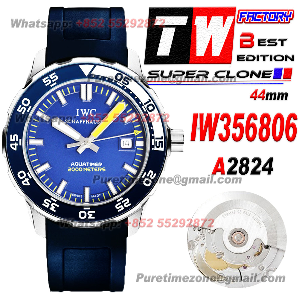Aquatimer 2000 IW356806 Automatic Mens Watch Super Clone TWF 44mm Blue Dial Blue Rubber Strap A2824