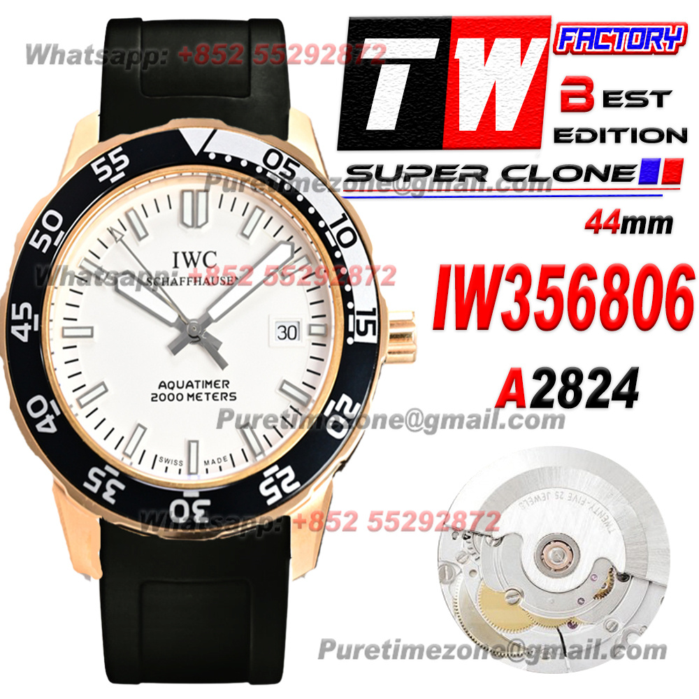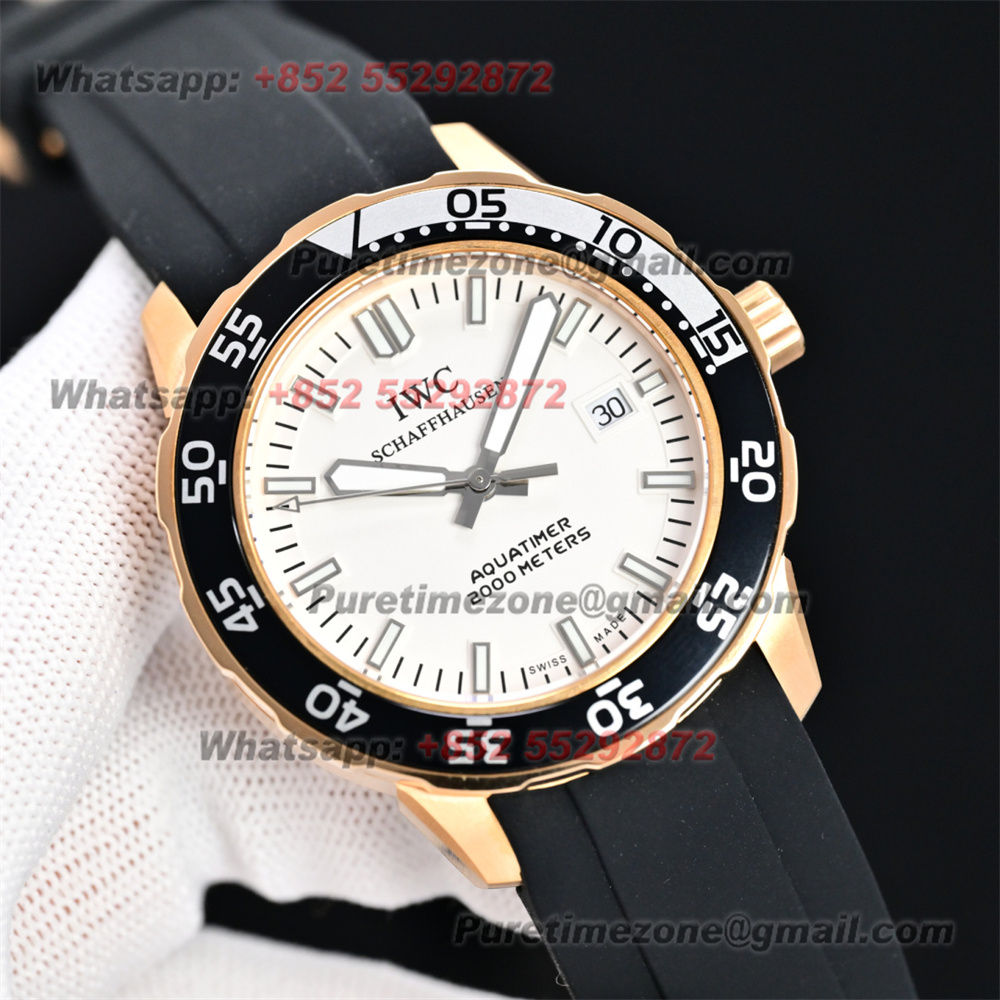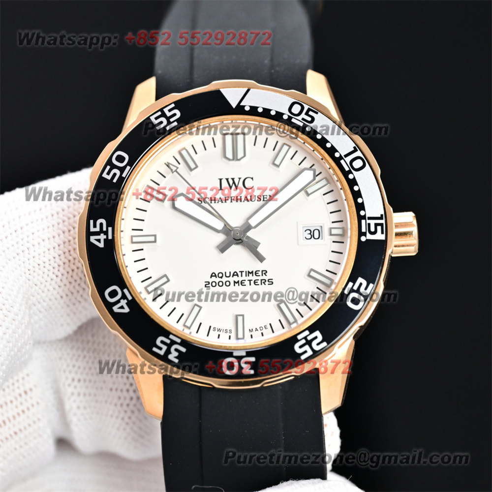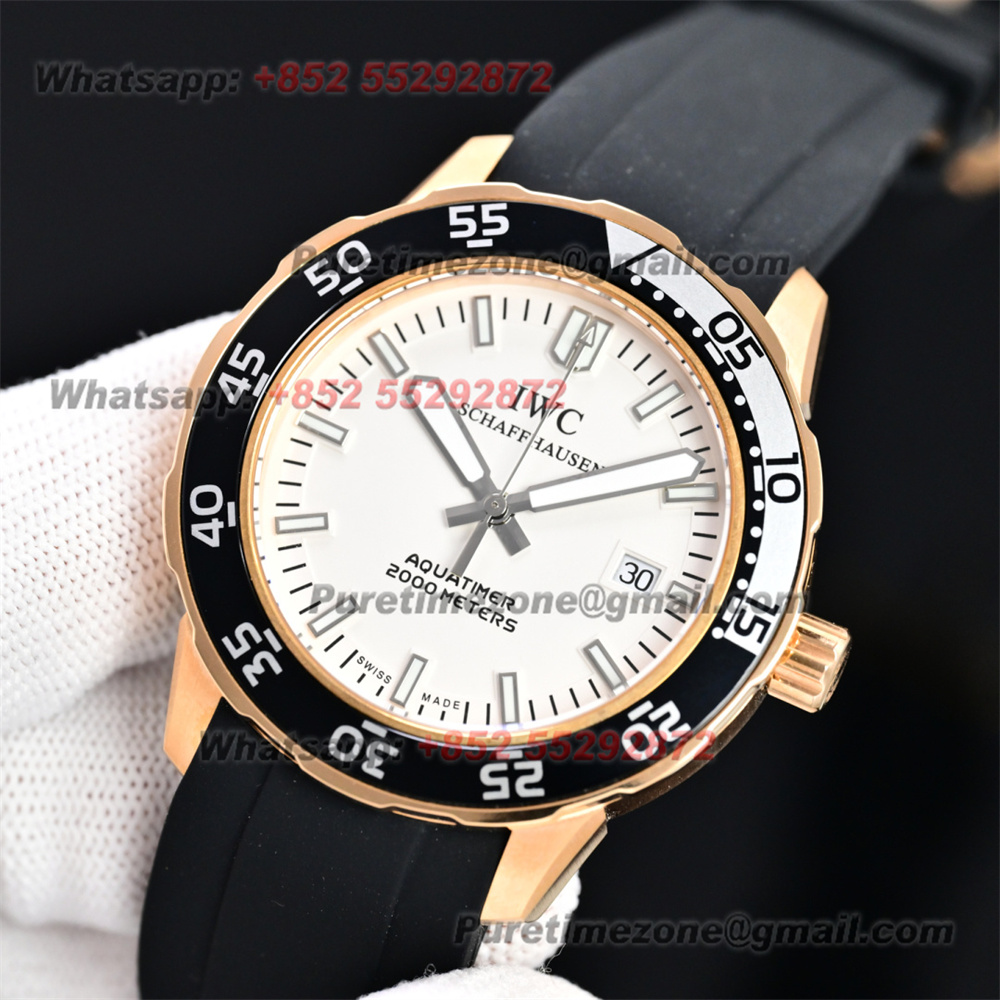 Aquatimer 2000 IW356806 Automatic Mens Watch Super Clone TWF 44mm RG White Dial Black Rubber Strap A2824