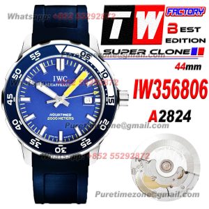 Aquatimer 2000 IW356806 Automatic Mens Watch Super Clone TWF 44mm Blue Dial Blue Rubber Strap A2824 $450.00 $350.00