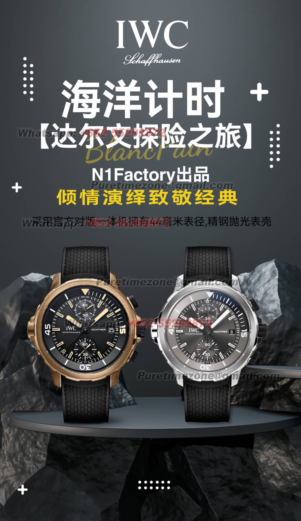 Aquatimer Chronograph Edition Sharks IW379503 Automatic Mens Watch Super Clone N1F RG Black Dial Rubber Strap A7750