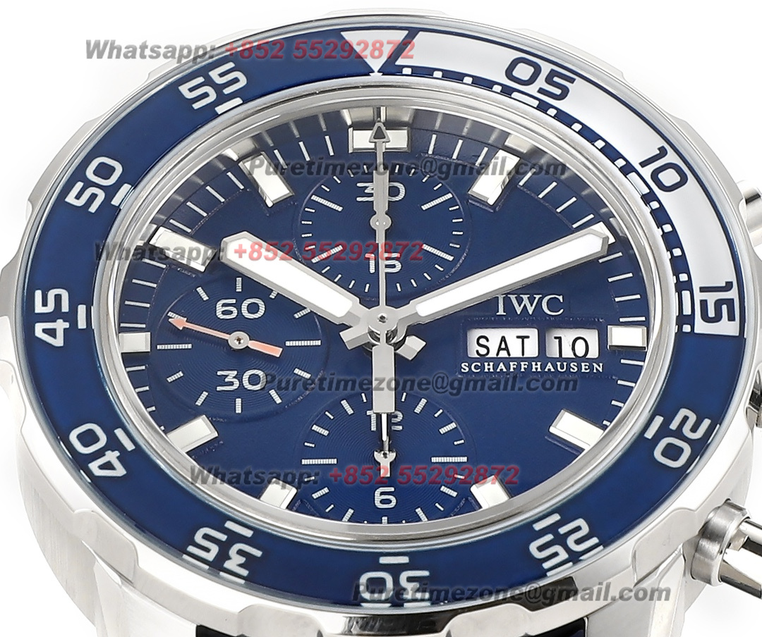 Aquatimer Chronograph IW376711 Automatic Mens Watch Super Clone V6SF 44mm Blue Dial Rubber Strap A7750