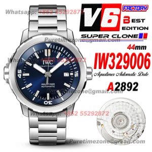 Aquatimer IW329006 Automatic Mens Watch Super Clone V6SF 44mm Blue Dial Black SS Bracelet A2892 $670.00 $570.00