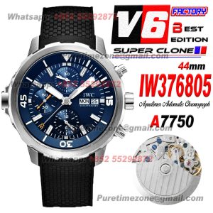Aquatimer Chronograph IW376805 Automatic Mens Watch Super Clone V6SF 44mm Blue Dial Black Rubber Strap A7750 $650.00 $550.00
