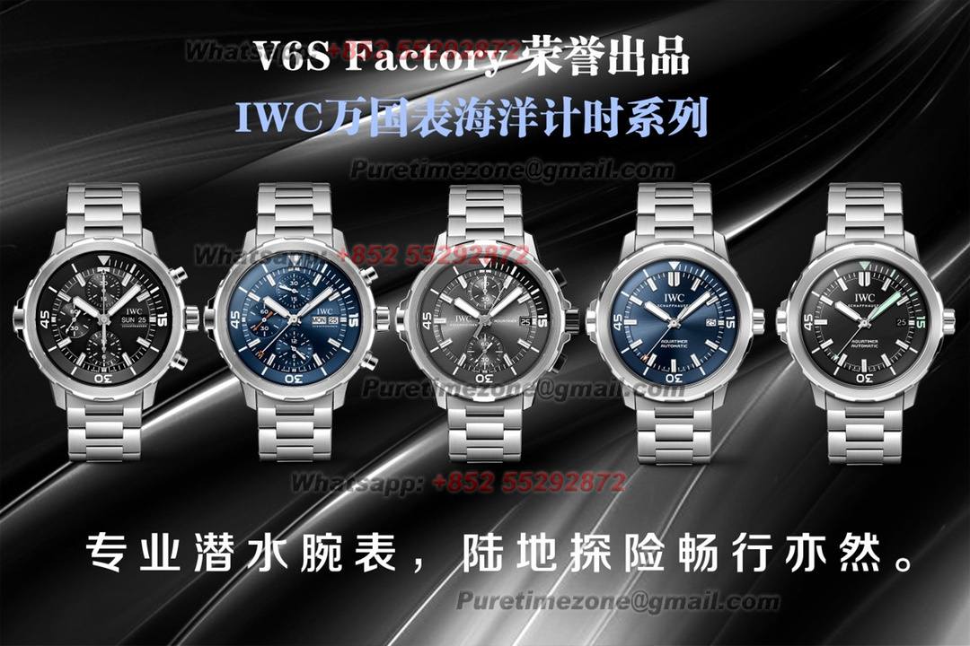 Aquatimer Chronograph IW376803 Automatic Mens Watch Super Clone V6SF 44mm Black Dial Black Rubber Strap A7750