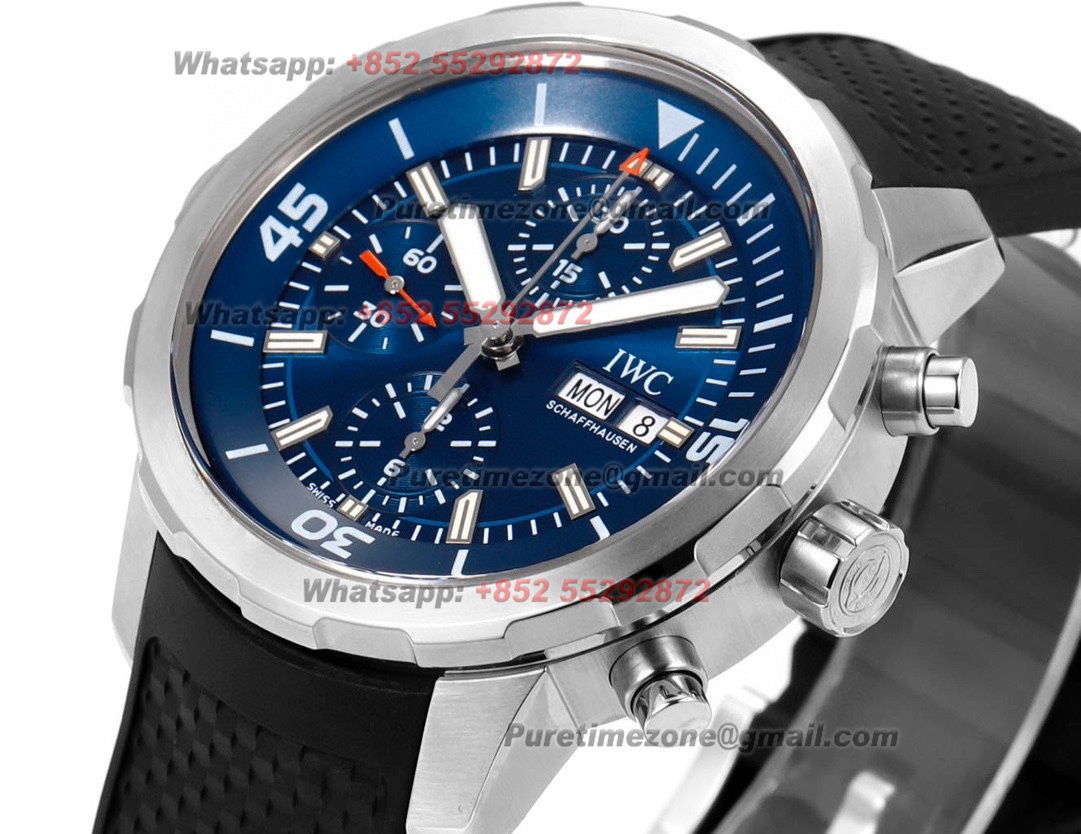 Aquatimer Chronograph IW376805 Automatic Mens Watch Super Clone N1F 44mm Blue Dial Black Rubber Strap A7750