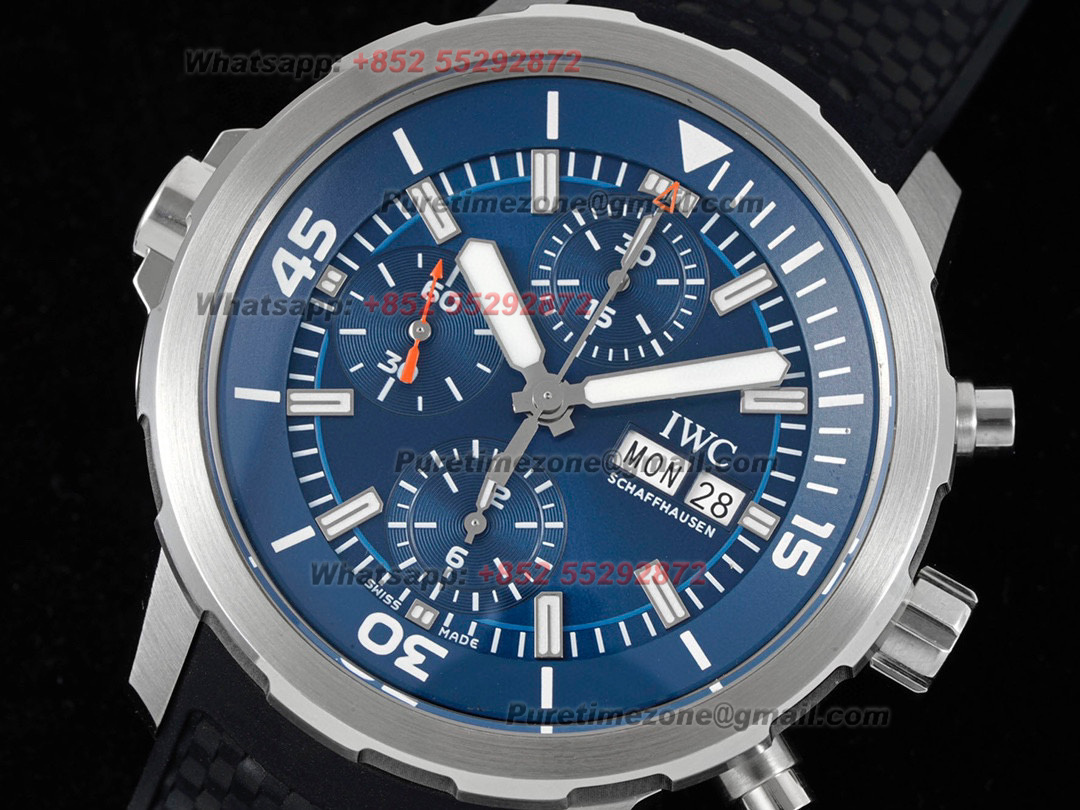 Aquatimer Chronograph IW376805 Automatic Mens Watch Super Clone RSF 45mm Blue Dial Black Rubber Strap A7750