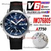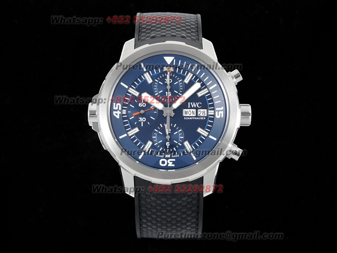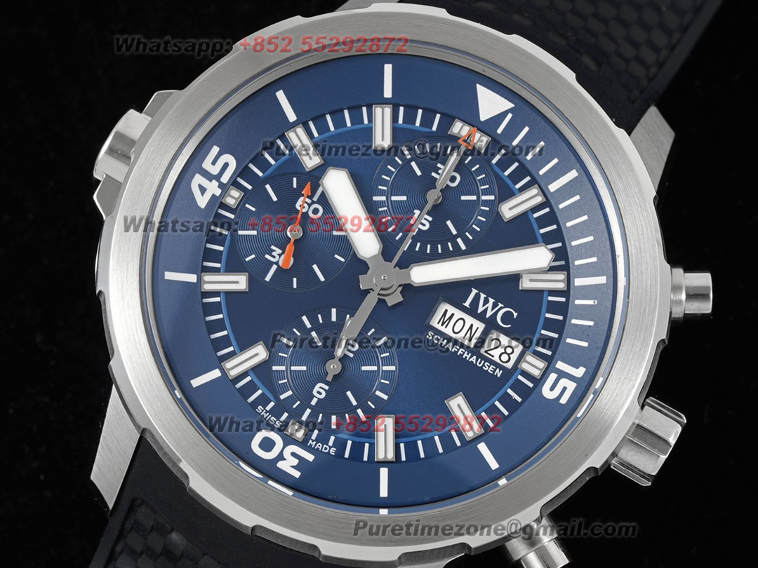 Aquatimer Chronograph IW376805 Automatic Mens Watch Super Clone V6SF 44mm Blue Dial Black Rubber Strap A7750