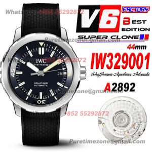 Aquatimer IW329002 Automatic Mens Watch Super Clone V6SF 44mm Black Dial Black SS Bracelet A2892