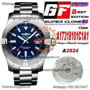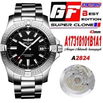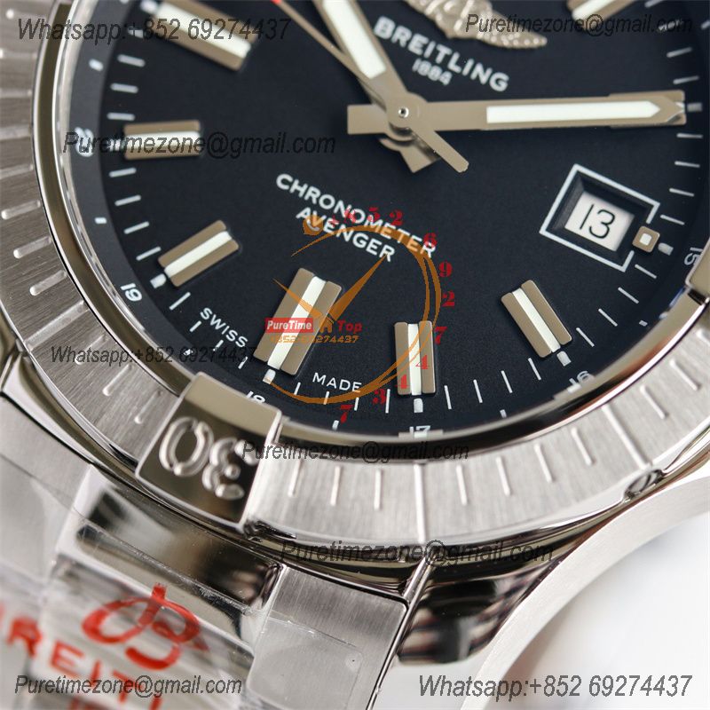 Avenger 43mm A17318101B1A1 A2824 Automatic Mens Watch Best Edition GF SS Black Dial SS Bracelet CHS