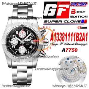 Avenger II 43 A13381111B2A1 A7750 Automatic Chronograph Mens Watch Best Edition GF Black Dial SS Bracelet CHS $720.00 $480.00