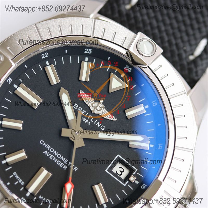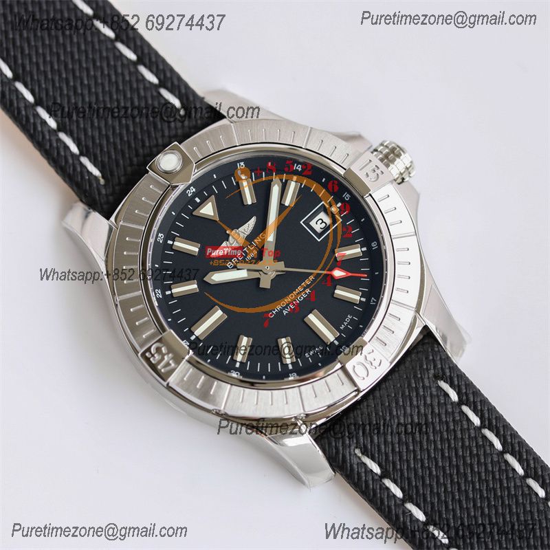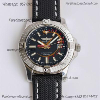 Avenger GMT V32395101 PVD A2836 Automatic Mens Watch BLSF Best Edition Black Dial Nylon Strap
