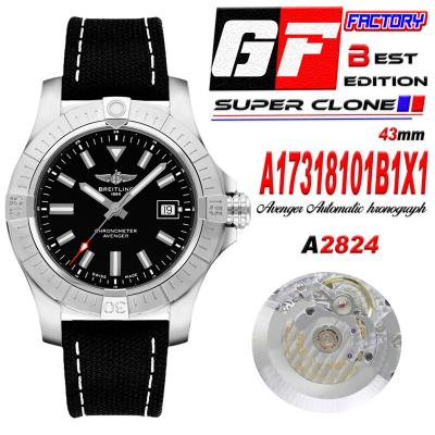 Home Breitling Avenger Avenger 43mm A17318101B1X1 A2824 Automatic Mens Watch Best Edition GF SS Black Dial Leather CHS