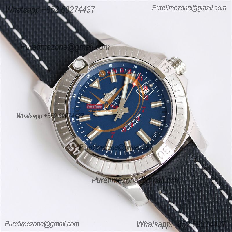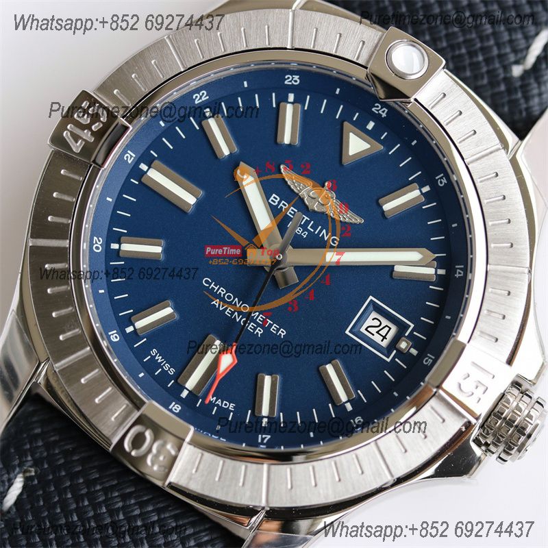 Avenger GMT V32395101 PVD A2836 Automatic Mens Watch BLSF Best Edition Blue Dial Nylon Strap