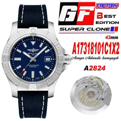 Avenger 43mm A17318101C1X2 A2824 Automatic Mens Watch Best Edition GF SS Blue Dial Leather CHS