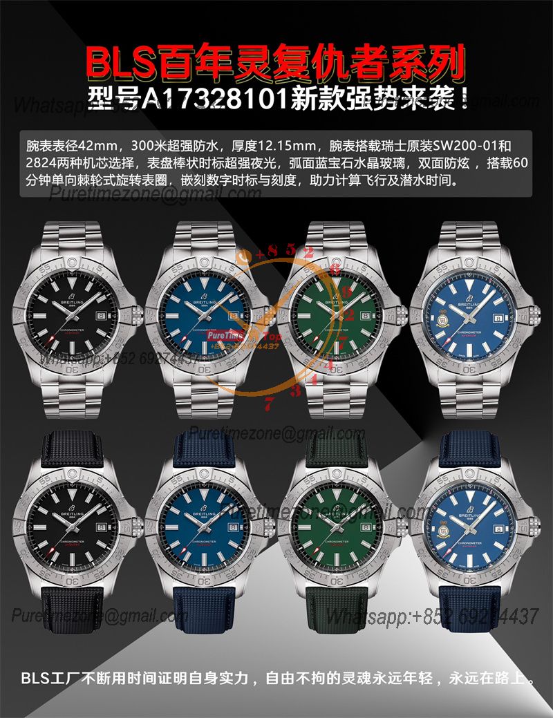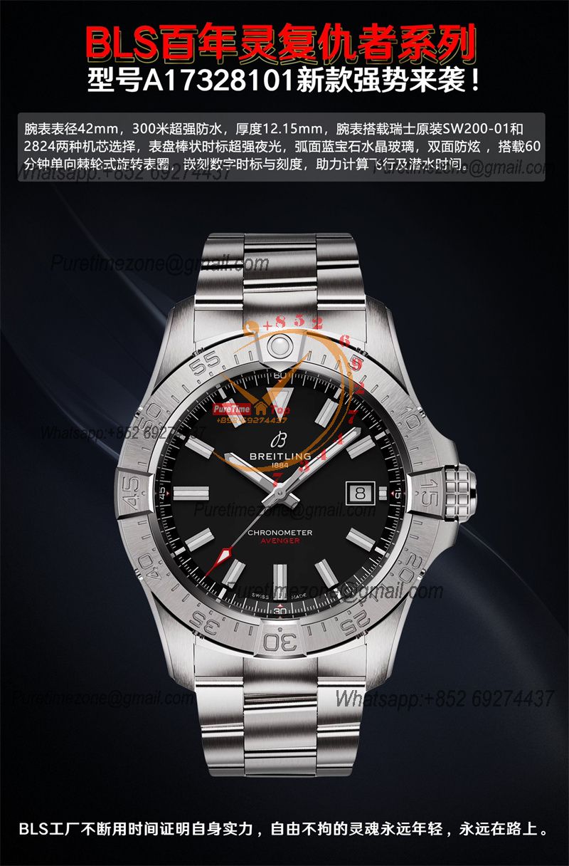 Home Breitling Avenger Avenger A17328101B1A1 A2824 Automatic Mens Watch Best Edition BLSF 42 Black Dial SS Bracele CHS