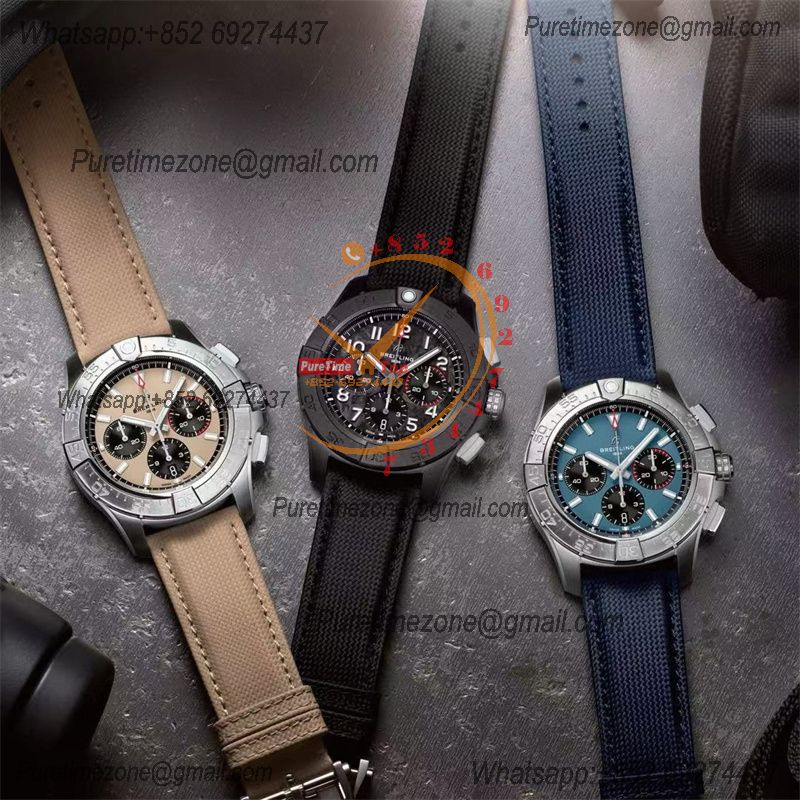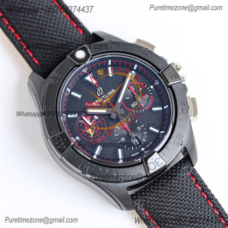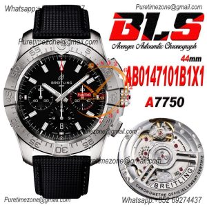 Avenger B01 Chronograph 44 A7750 Automatic Mens Watch SB01473A1B1X1 Best Edition BLSF DLC Black Dial Leather CHS