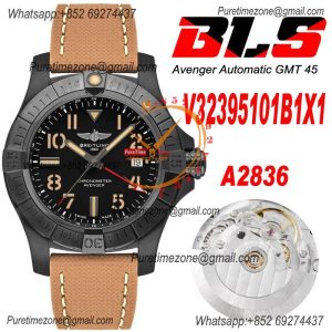 Avenger GMT V32395101 PVD A2836 Automatic Mens Watch BLSF Best Edition Black Dial Nylon Strap
