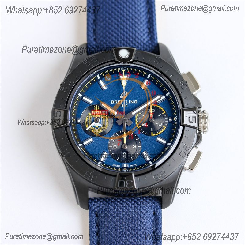 Home Breitling Avenger Avenger B01 Chronograph 44 A7750 Automatic Mens Watch SB01474A1C1X1 Best Edition BLSF DLC Black Dial Blue Leather CHS