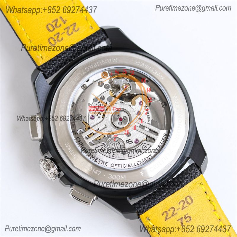 Avenger B01 Chronograph 44 A7750 Automatic Mens Watch SB01473A1B1X1 Best Edition BLSF DLC Black Dial Leather CHS