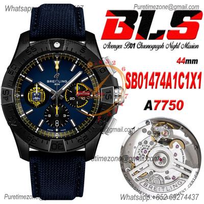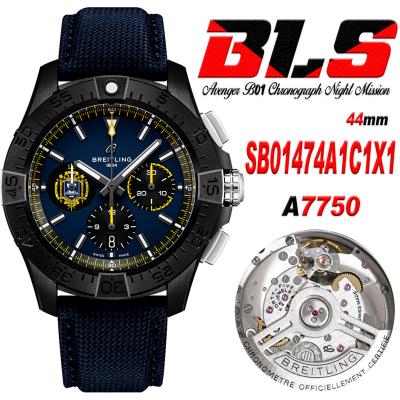 Avenger B01 Chronograph 44 A7750 Automatic Mens Watch SB01474A1C1X1 Best Edition BLSF DLC Black Dial Blue Leather CHS