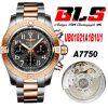 Avenger B01 UB01821 ETA7750 Automatic Chronograph Mens Watch Best Edition BLSF 45mm RG Black Dial SS Bracelet