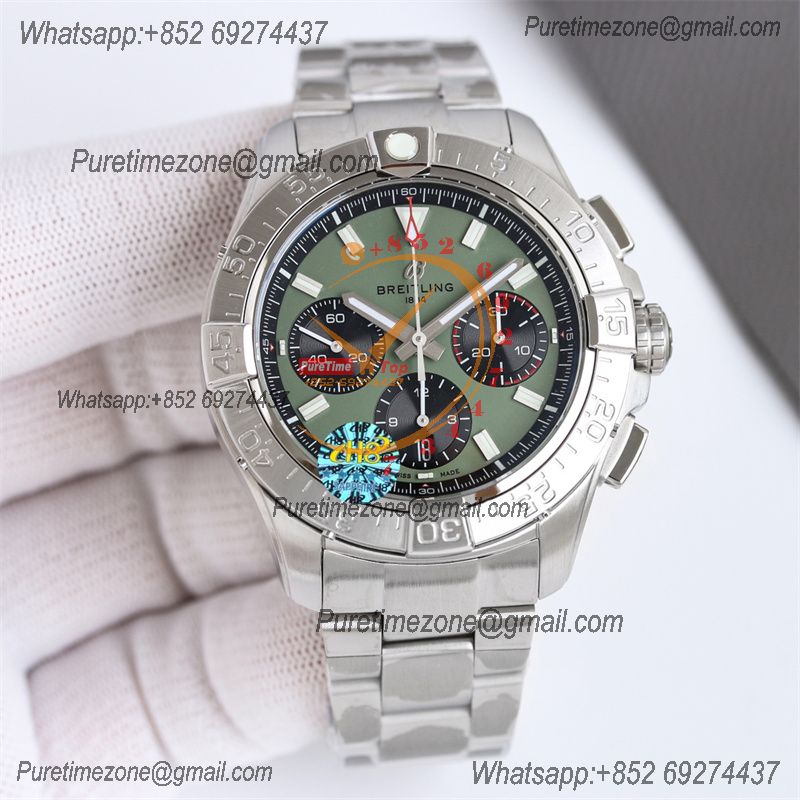 Avenger Chronograph AB0147101L1A1 A7750 Automatic Mens Watch Best Edition BLSF 44 Green Dial SS Bracelet CHS