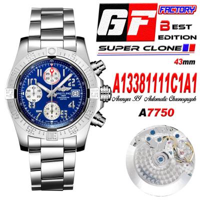 Home Breitling Avenger Avenger II 43 A13381111C1A1 A7750 Automatic Chronograph Mens Watch Best Edition GF Blue Dial SS Bracelet CHS