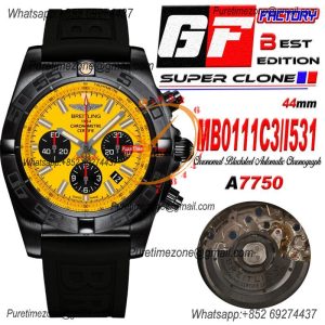 Chronomat 44 Blacksteel 44 Special Edition A7750 Automatic Chronograph Mens Watch Best Edition GF DLC Yellow Dial Rubber $720.00 $480.00