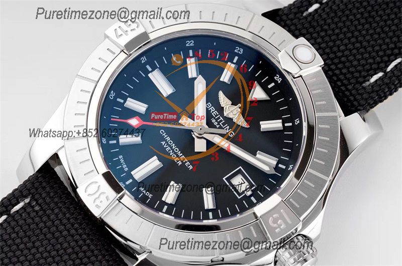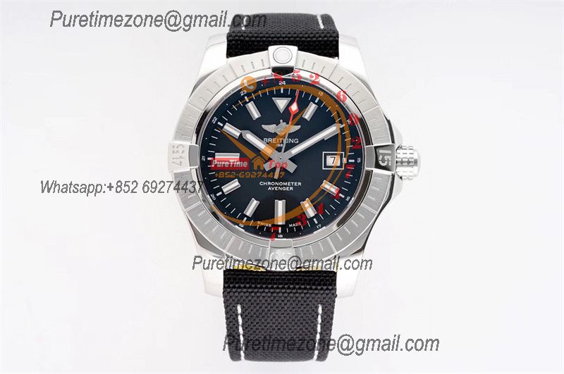 Avenger GMT V32395101 PVD A2836 Automatic Mens Watch BLSF Best Edition Black Dial Nylon Strap
