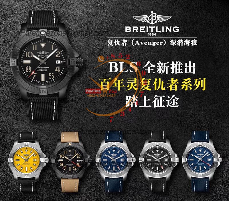 Home Breitling Avenger Avenger II Seawolf V17319101 PVD A2824 Automatic Mens Watch BLSF Best Edition Black Dial Nylon Strap