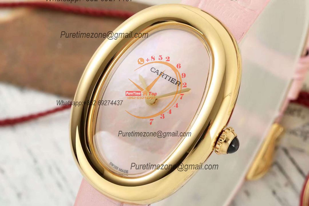 Home Cartier Baignoire Baignoire WGBA0022 Swiss Ronda Quartz Womens Watch Best Edition AF YG MOP Dial Pink Croco Strap Ladies