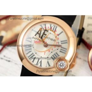 Ballon Blanc BWGBL0003 30mm Ronda Quartz Womens Watch Best Edition AF RG Silver Dial Black Leather Strap Ladies