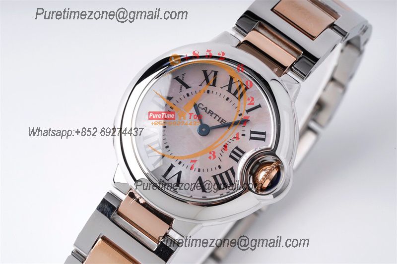 Home Cartier Ball Bleu de Cartier Ballon Bleu W2BB0009 Ronda Quartz Womens Watch Best Edition AF 28mm Two Tone RG Pink Dial SS Bracelet