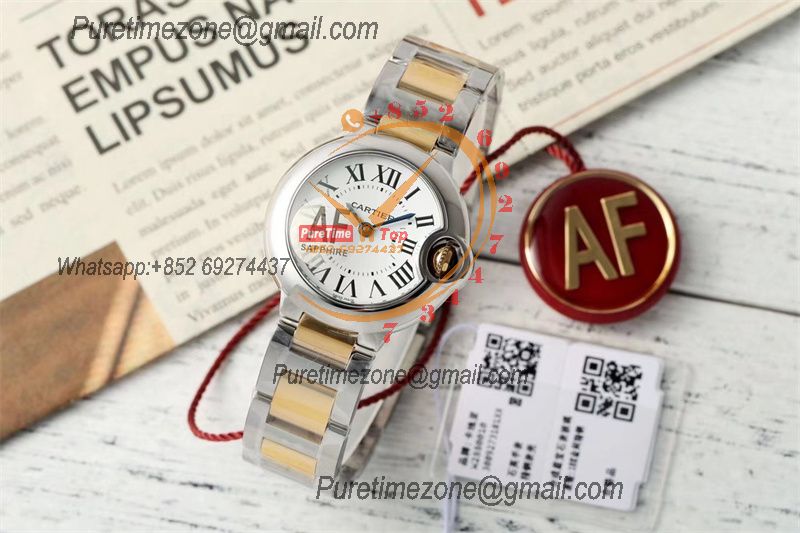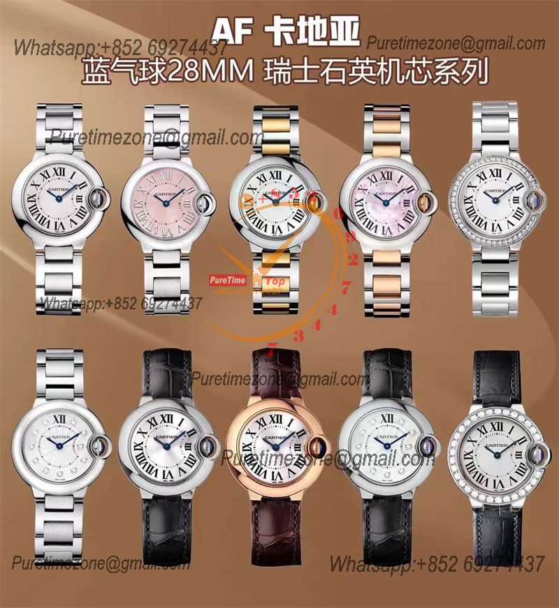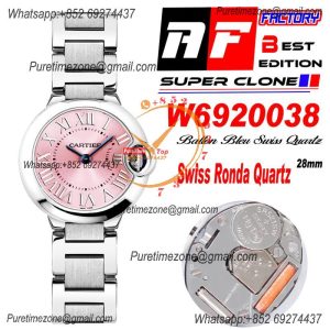 Home Cartier Ball Bleu de Cartier Ballon Bleu W2BB0010 Ronda Quartz Womens Watch Best Edition AF 28mm Two Tone YG Pink Dial SS Bracelet